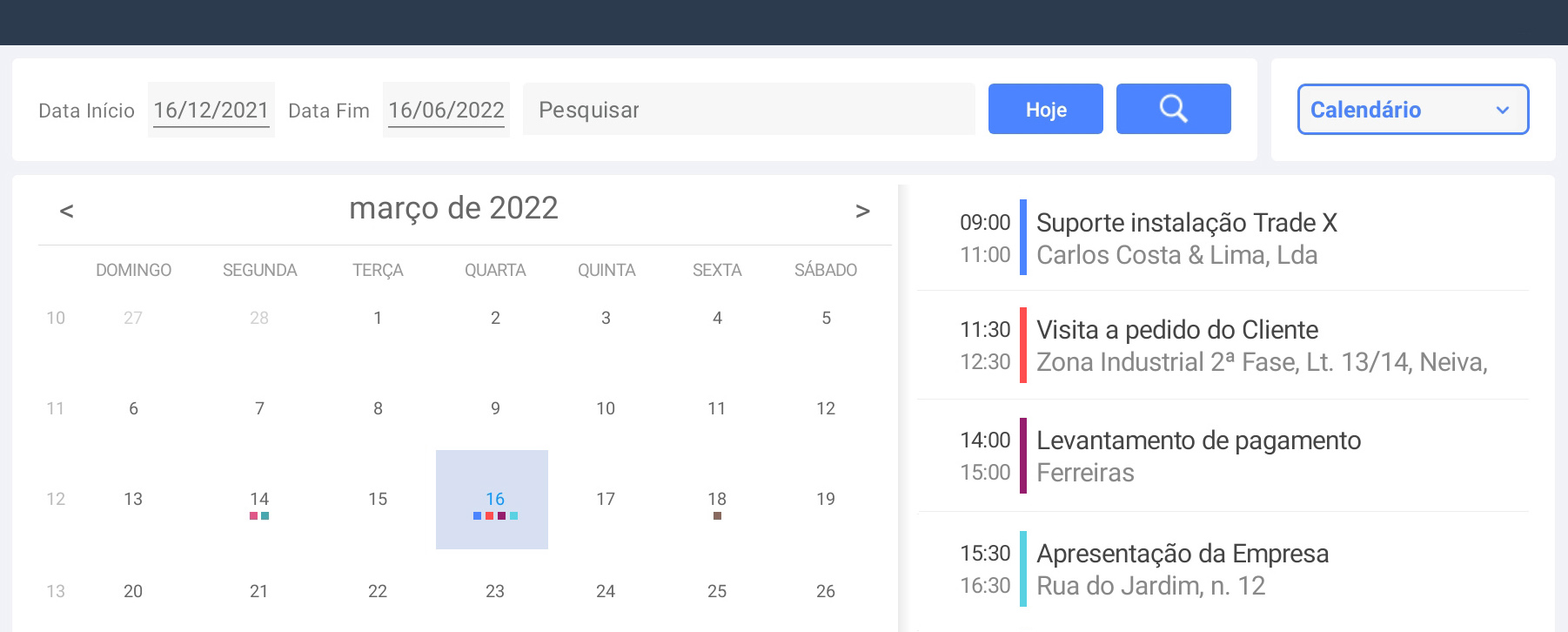 Uma poderosa e versátil agenda, com vistas de dia, semana ou mês, que lhe vão ajudar