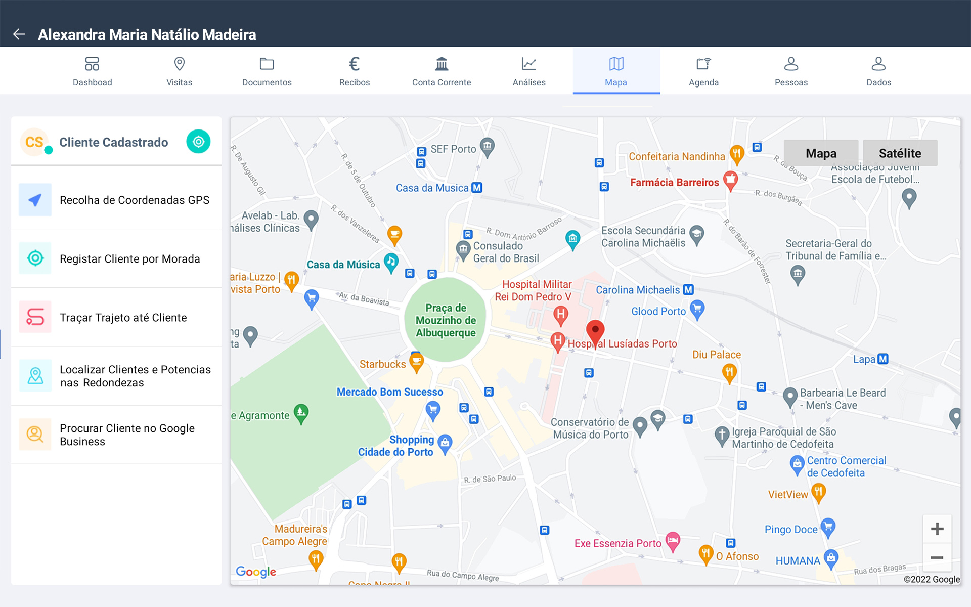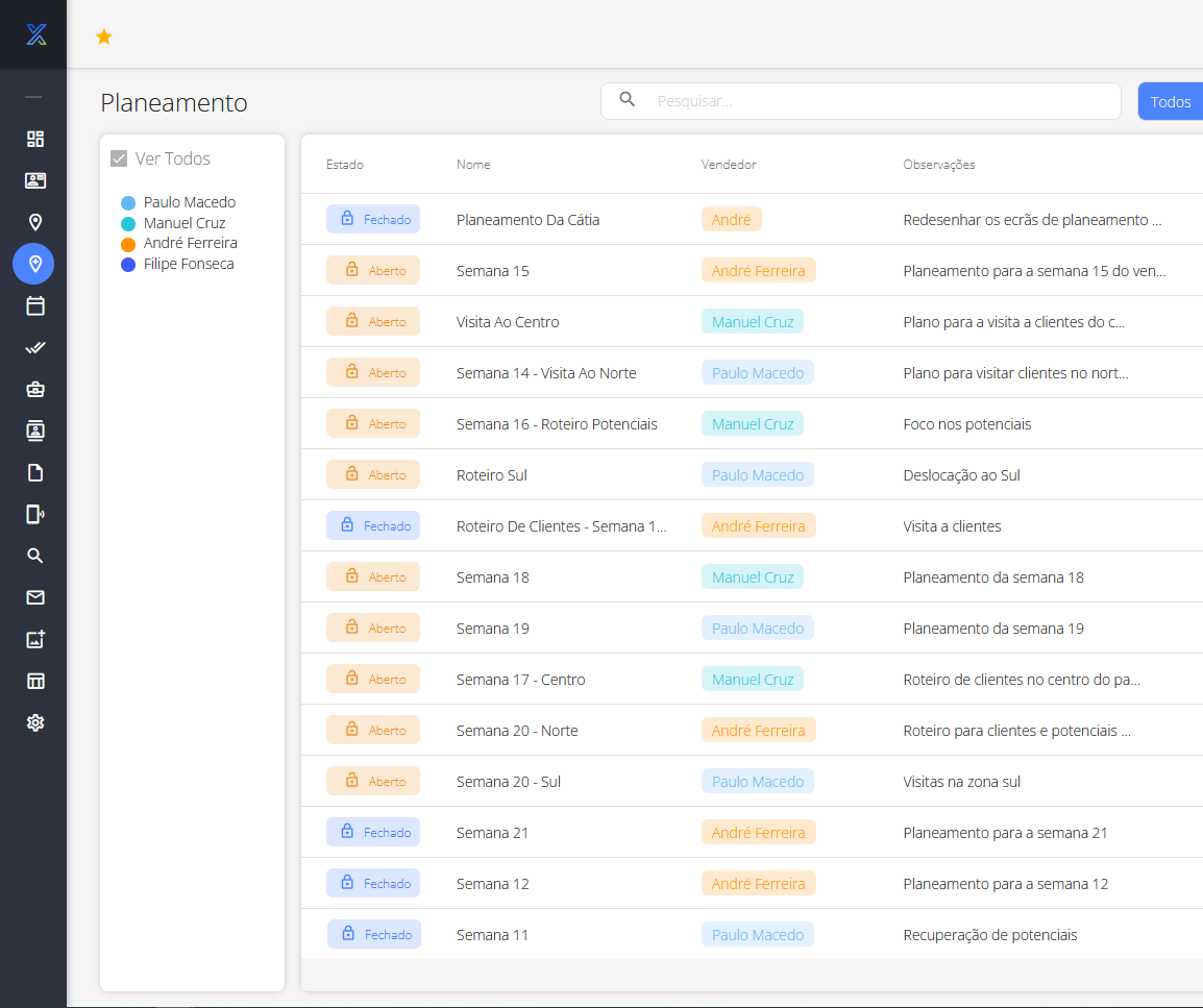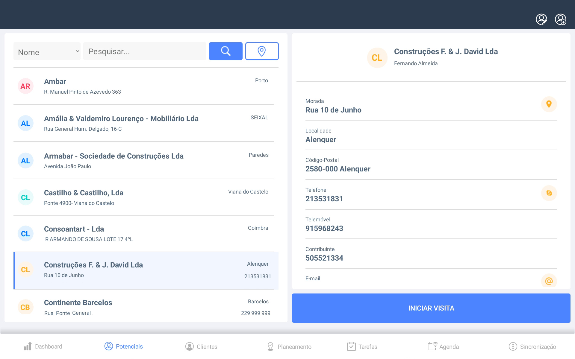 Crie Planeamentos de Visitas para intervalos de tempo, controle a ordenação e explore a localização nos Mapas Google ou Apple. Inicie Visitas e controle a eficácia do Planeamento.