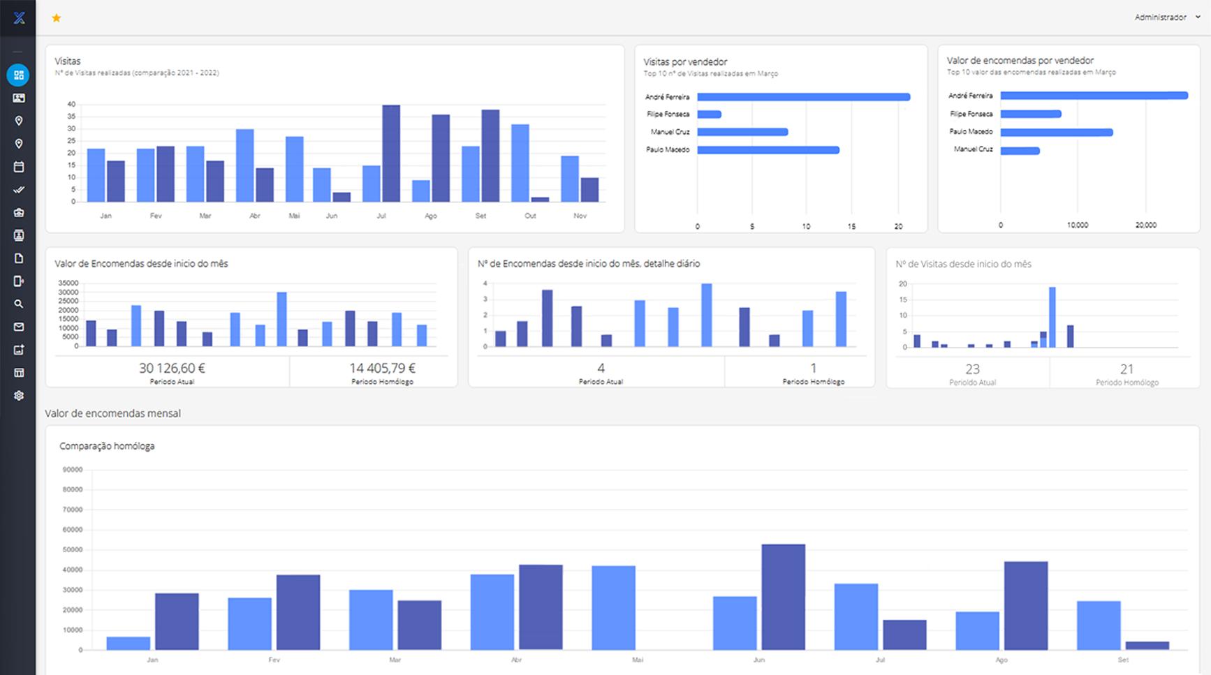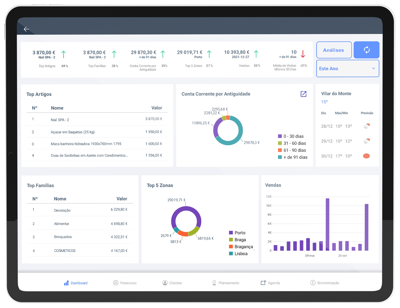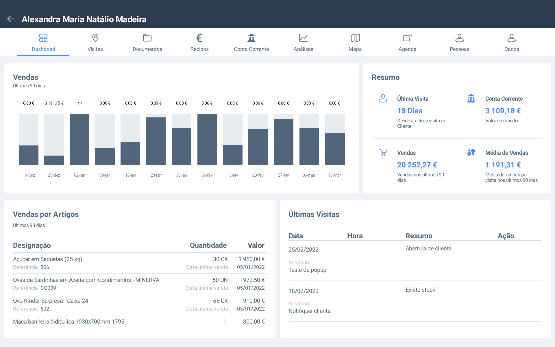 Aceda a um conjunto de análises globais do Comercial ou de forma mais localizada de cada Cliente.