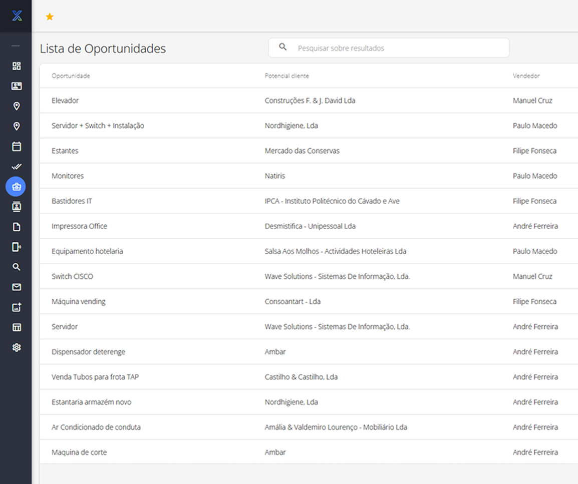 Para além de garantir toda a concentração da operação dos comerciais, nesta aplicação tem disponível vários módulos, como o Dashboard, Clientes Potenciais, Pessoas, Agendamentos e Gestão de Oportunidades, podendo monitorizar e acompanhar a atividade de toda a sua equipa comercial com uma dinâmica permanente.