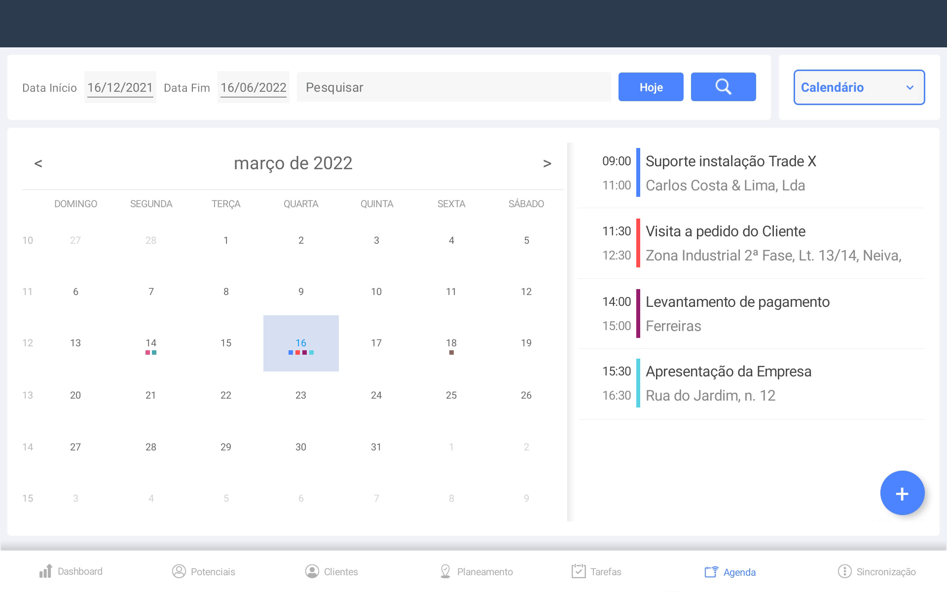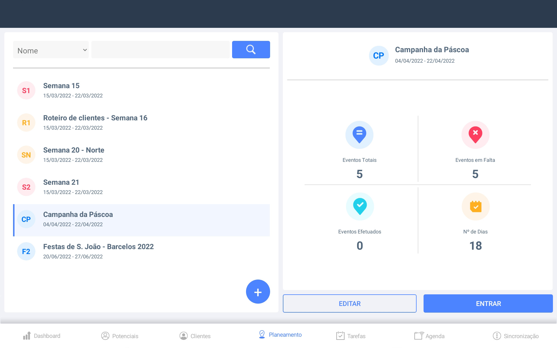 Pode preparar um conjunto de Planemantos diferentes simultaneamente, organizar as visitas por semana, mês ou qualquer outro intervalo de datas.